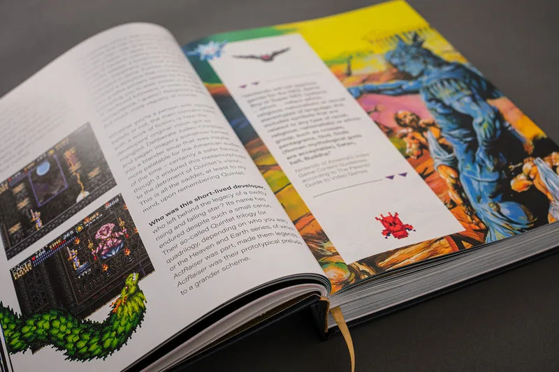 Appropriately named The Definitive Book of SNES RPGs Vol. 1, the hardback book and free PDF retail for $48, offering a foil-blocked cover, a gold bookmark ribbon, with an edge-to-edge high-quality lithographic print for its pages and a sewn binding that allows the book to lay flat on a table (remember, these are coffee table books, so they are heavy). In other words, Bitmap Books doesn’t cut corners; what you get is top-tier quality.