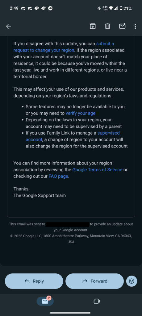 Of course, Guilty Gamer has reached out to Google so the company can clarify precisely what the problem is. For now, if you happen to receive an email from Google that says it’s switching your location to one you don’t live in, we can at the very least assuage your fears, these emails are legit, and to fix the issue all you have to do is jump on over to Google’s Country Association form to set your location back to the correct location.