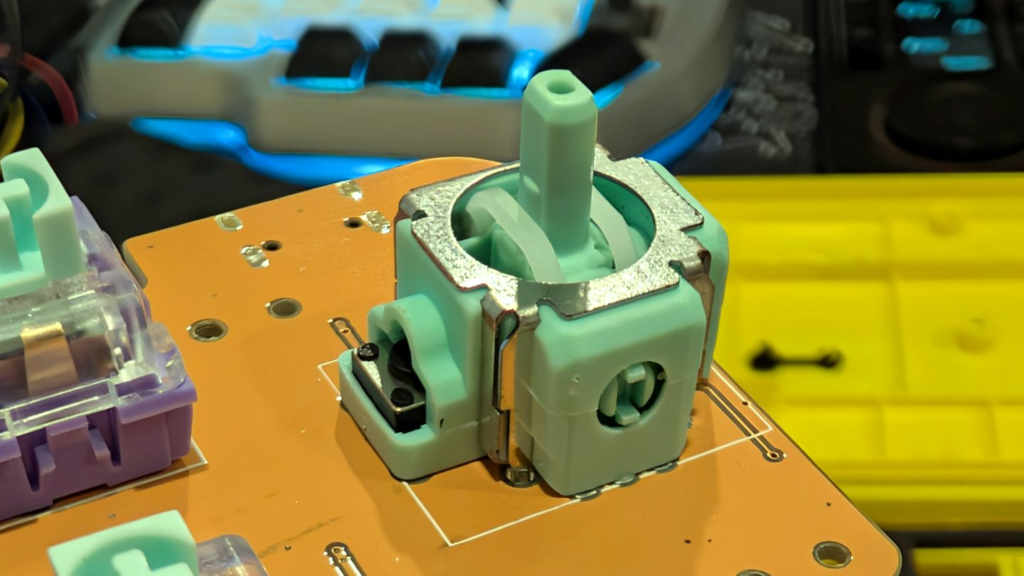 The design of this thing, from a purely aesthetic perspective, is actually pretty nice; unfortunately, a lot of that is only skin deep. In particular, the rotary encoder and three buttons on the left side feel really cheap to twist and press. On the right side, the “joystick” and scroll wheel feel better, although I think the silver of the scroll wheel is out of place with the vibe of the rest of the macropad.